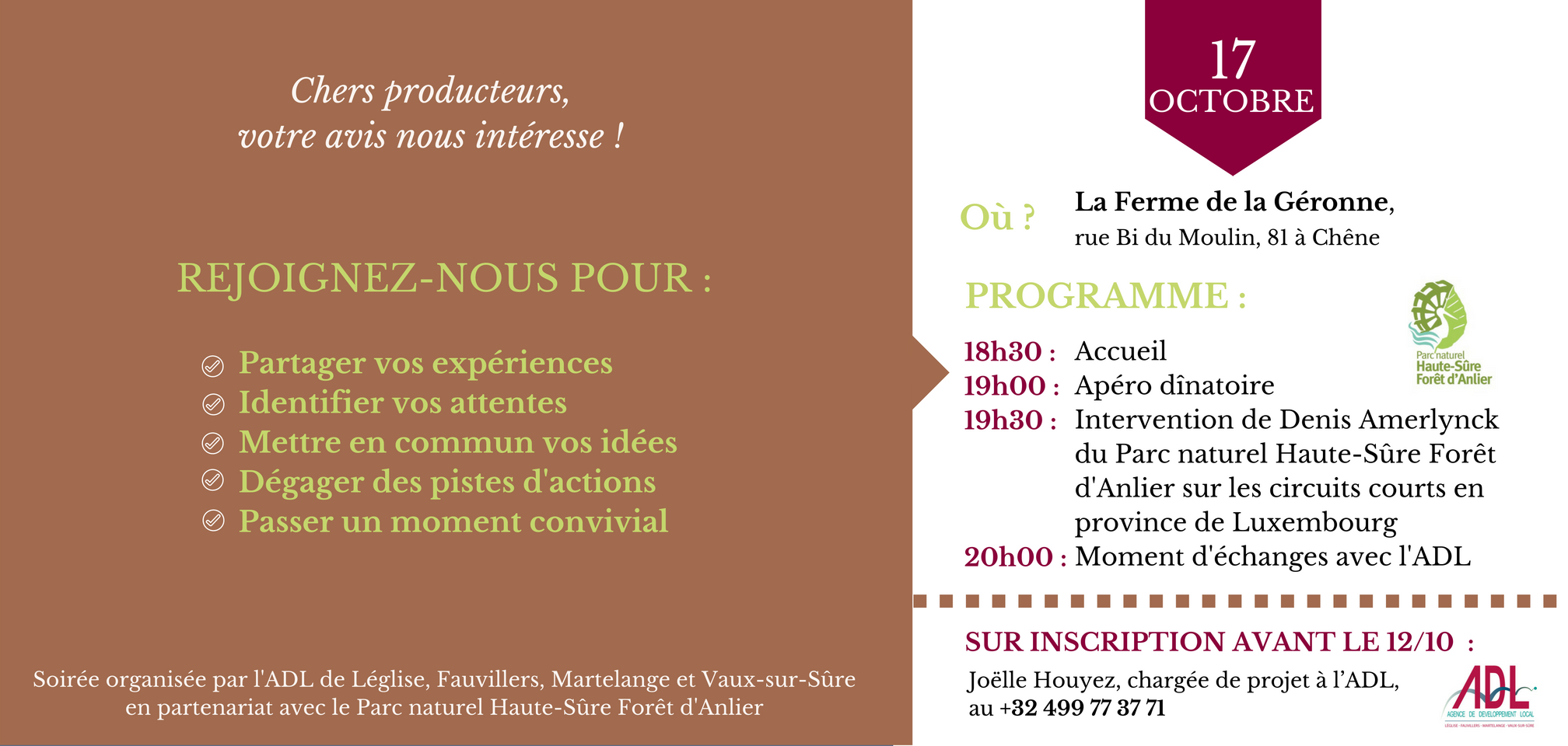 - Denis Amerlynck du Parc naturel Haute-Sûre Forêt d’Anlier viendra vous parler des circuits courts en province de Luxembourg.